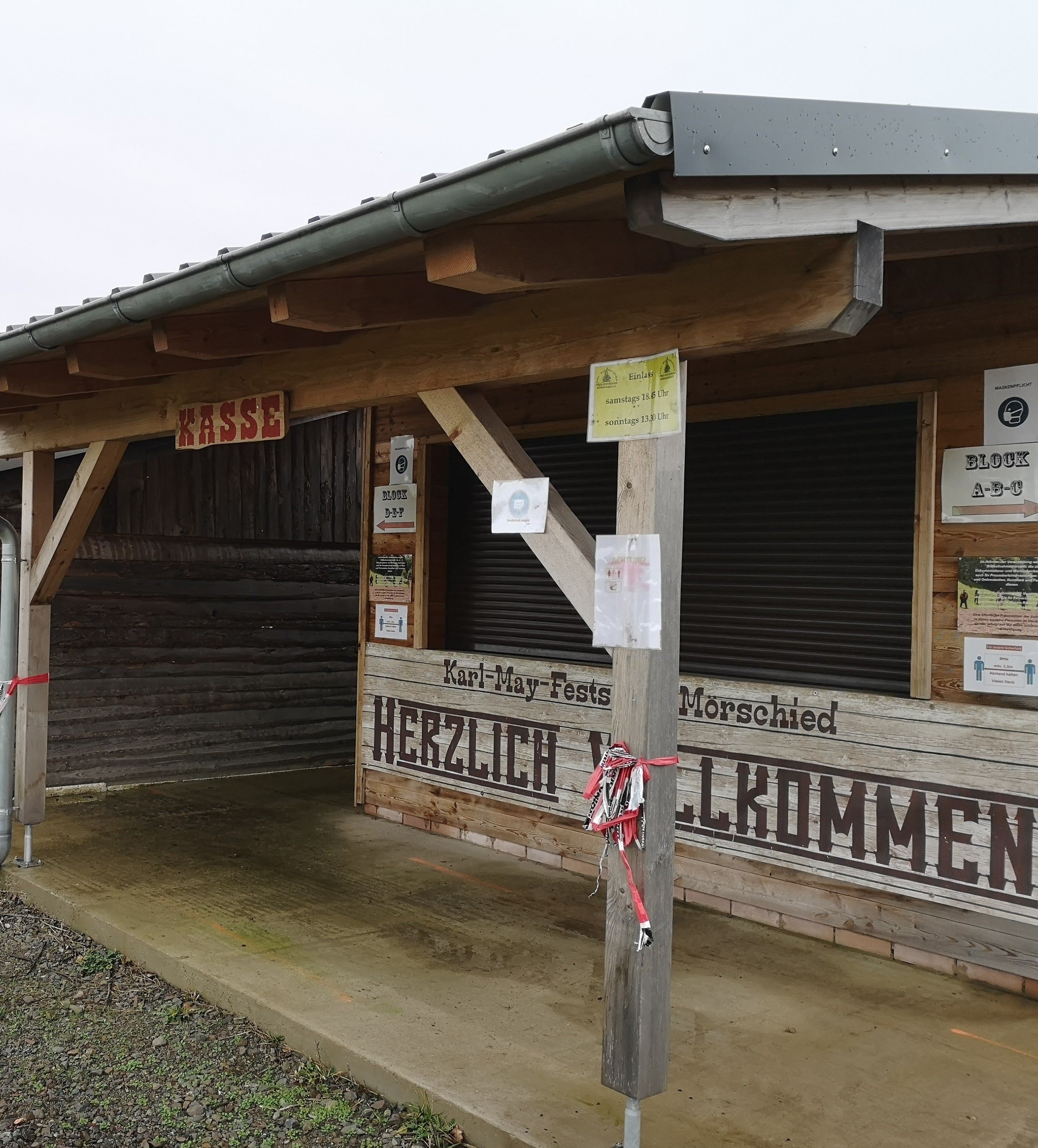 Wat heeft Karl May vandoen met een wandelgebied in de Hunsrück? Ik wist dat er in de buurt van Bollenbach elke zomer in het openluchttheater van Morschied een opvoering plaatsvindt naar een bewerking van een van de boeken van Karl May. Toch was ik (on)aangenaam verrast toen ik onverwacht de auto geparkeerd bleek te hebben op het Festivalterrein.