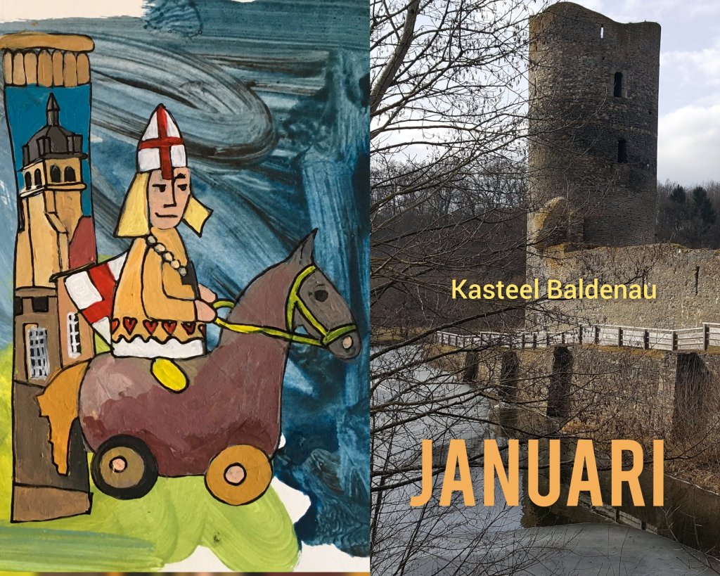 Je krijgt ELKE MAAND EEN ANDERE AFBEELDING VAN EEN VAN DE KASTELEN VAN DE ADELLIJKE FAMILIE VON SPONHEIM, DIE IN DE MIDDELEEUWEN over GROTE DELEN VAN DE HUNSRUCK heerstte EN VAN HUN GROTE TEGENSTREVEr IN DE 14DE EEUW: AARTSBISSCHOP BALDUIN VON LUXEMBURG, GECOMBINEERD MET EEN MINIATUUR VAN DE HAND VAN CONNY SPRINKHUIZEN.