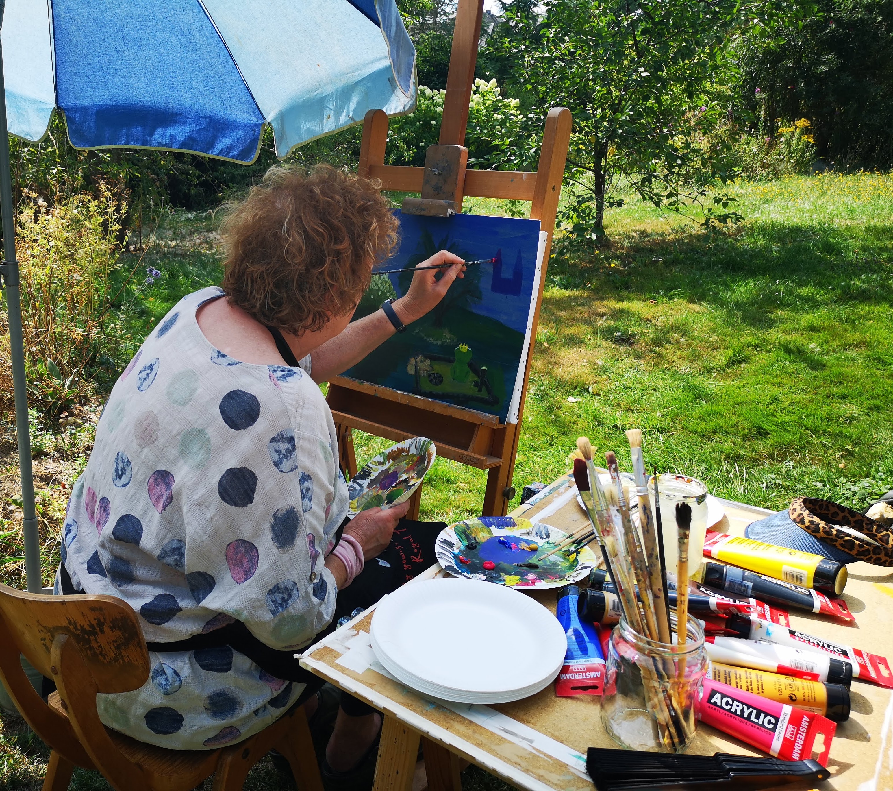 Het was weer genieten, voor mij en voor de cursisten. Het thema van de schilderweek was deze keer ‘Sprookjes’. Het blijft spannend om te zien hoe deelnemers het thema oppakken en uitwerken. En ook of ze wel uit de voeten kunnen met het thema. Van te voren krijgen de cursisten een mail waarin ik ze vraag om alvast na te denken over ‘het sprookje’ en krijgen ze ter inspiratie voorbeelden uit de kunstgeschiedenis.