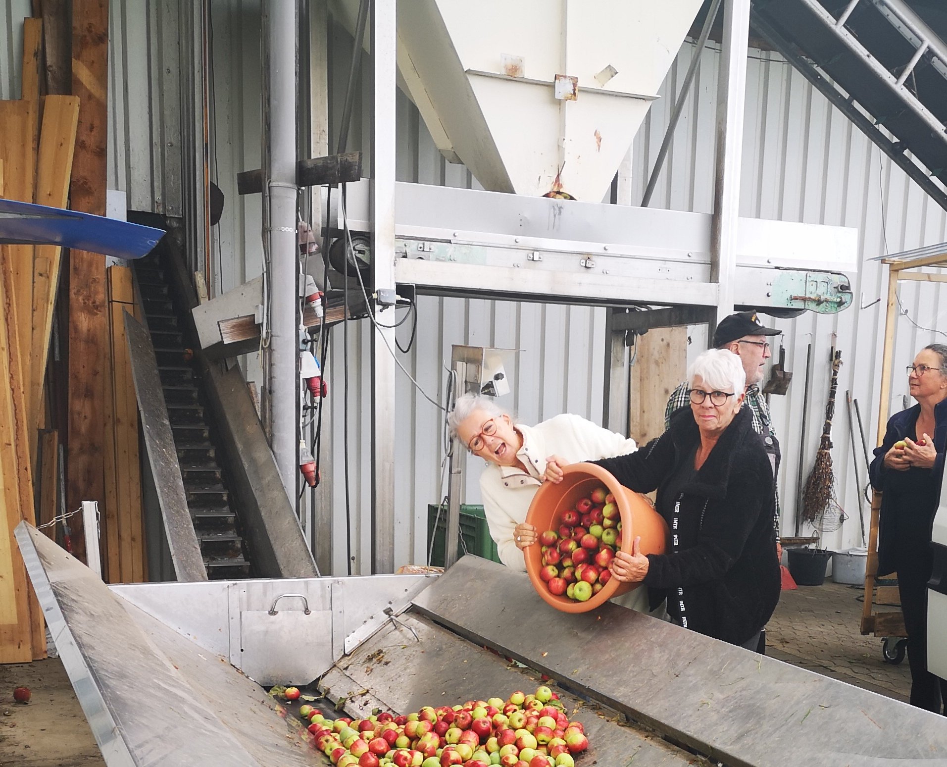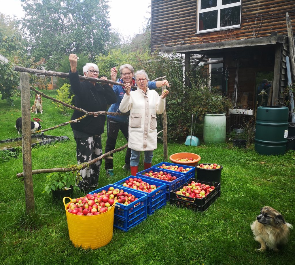 Uiteindelijk hebben we met z’n drieën zo’n 135 kg appels voor de fruitfabriek geplukt. Vrijdag hebben we de oogst in de auto’s geladen en zijn we naar Gebroth gereden om het fruit af te leveren en in ruil krijgen kregen we tegen korting een bepaalde hoeveelheid kratten met heerlijke flessen appelsap.