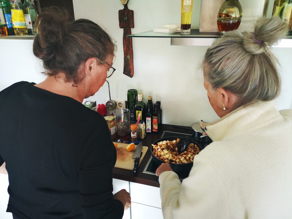 En natuurlijk hebben we appel-perenchutney gemaakt, pruimenchutney en jams, zoadat de dames ook nog eigen potjes mee naar huis konden nemen. Smikkelen en smullen maar.