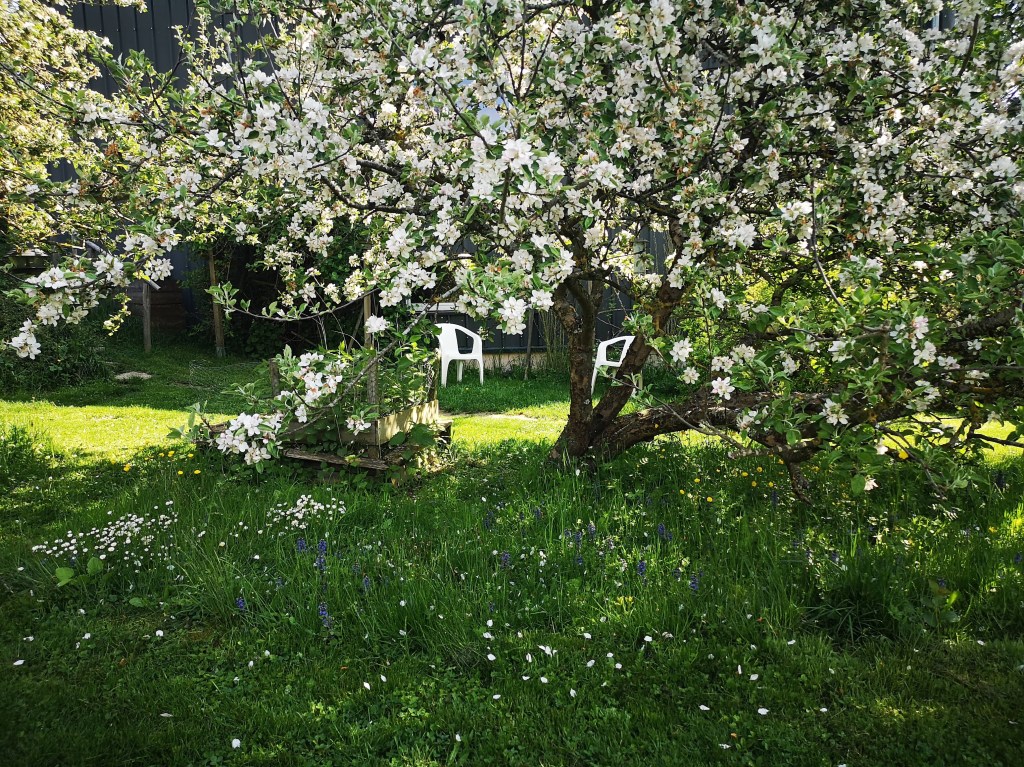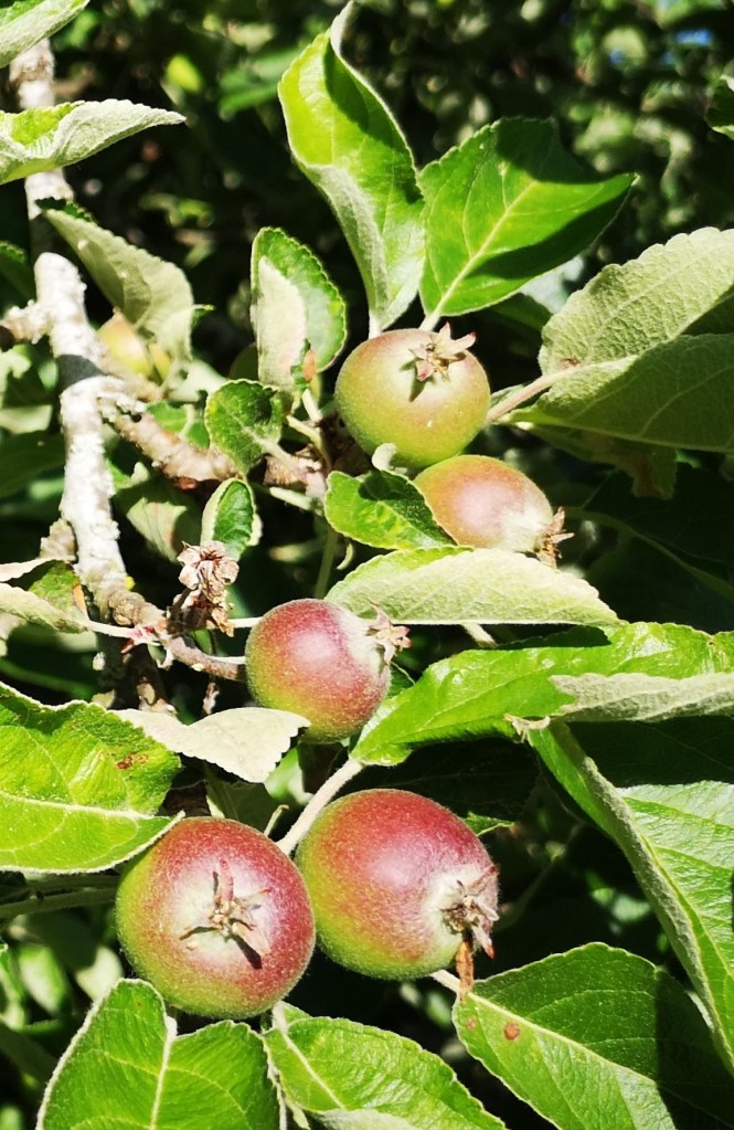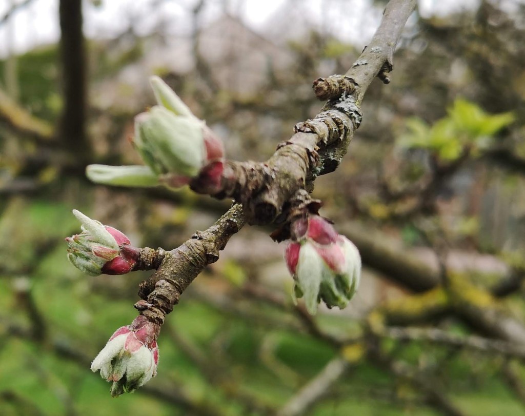Je kan het je nu nauwelijks voorstellen. Sommige fruitbomen hebben nog herfstige bladeren, maar de meeste bomen in de tuin zijn nu kaal. Skeletten van takken met hier en daar nog een vergeten, ingedroogde of aangevreten vrucht.