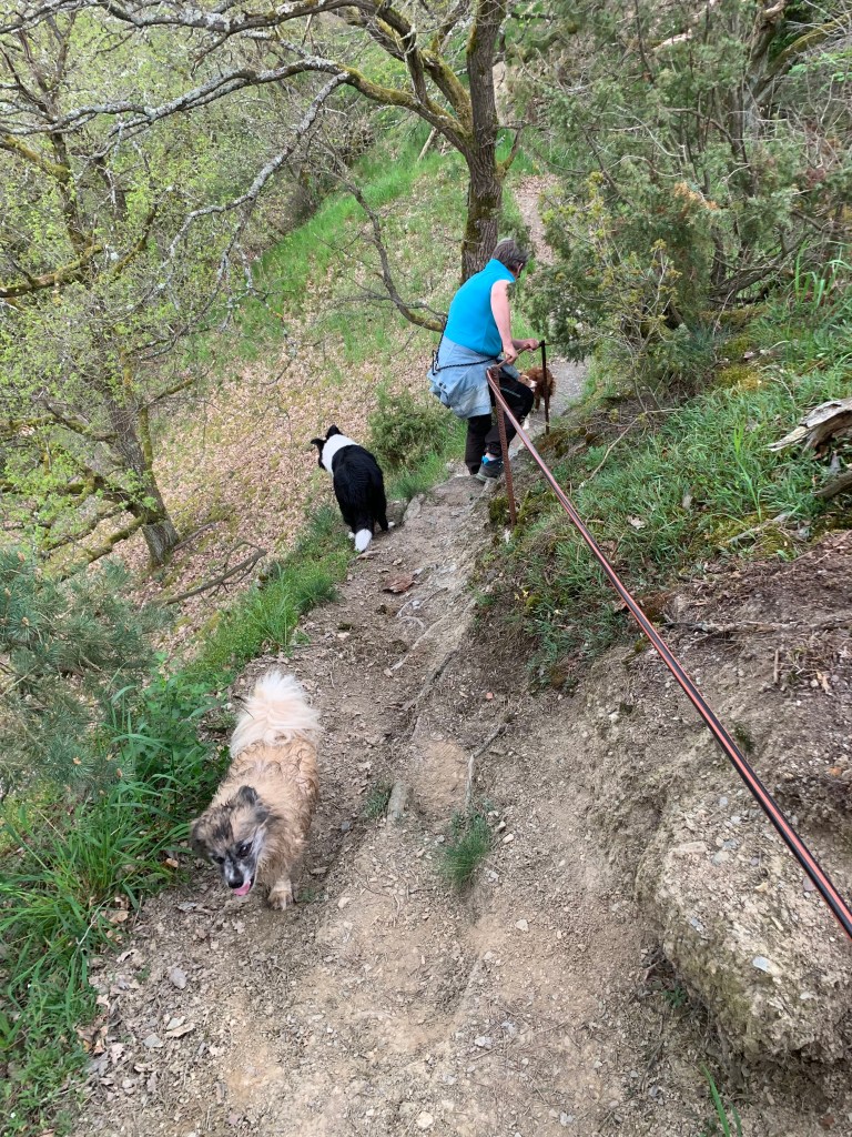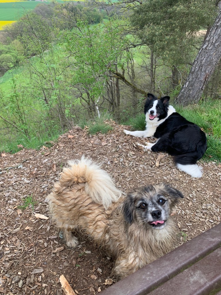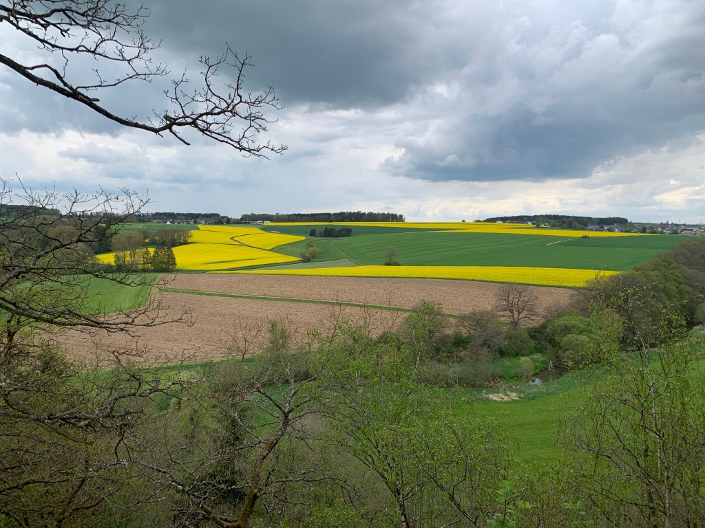 We zijn hier om te wandelen en dat doen we door de auto verderop te parkeren, bij het uitzichtpunt over Ravengiersburg waar de wandeling begint.