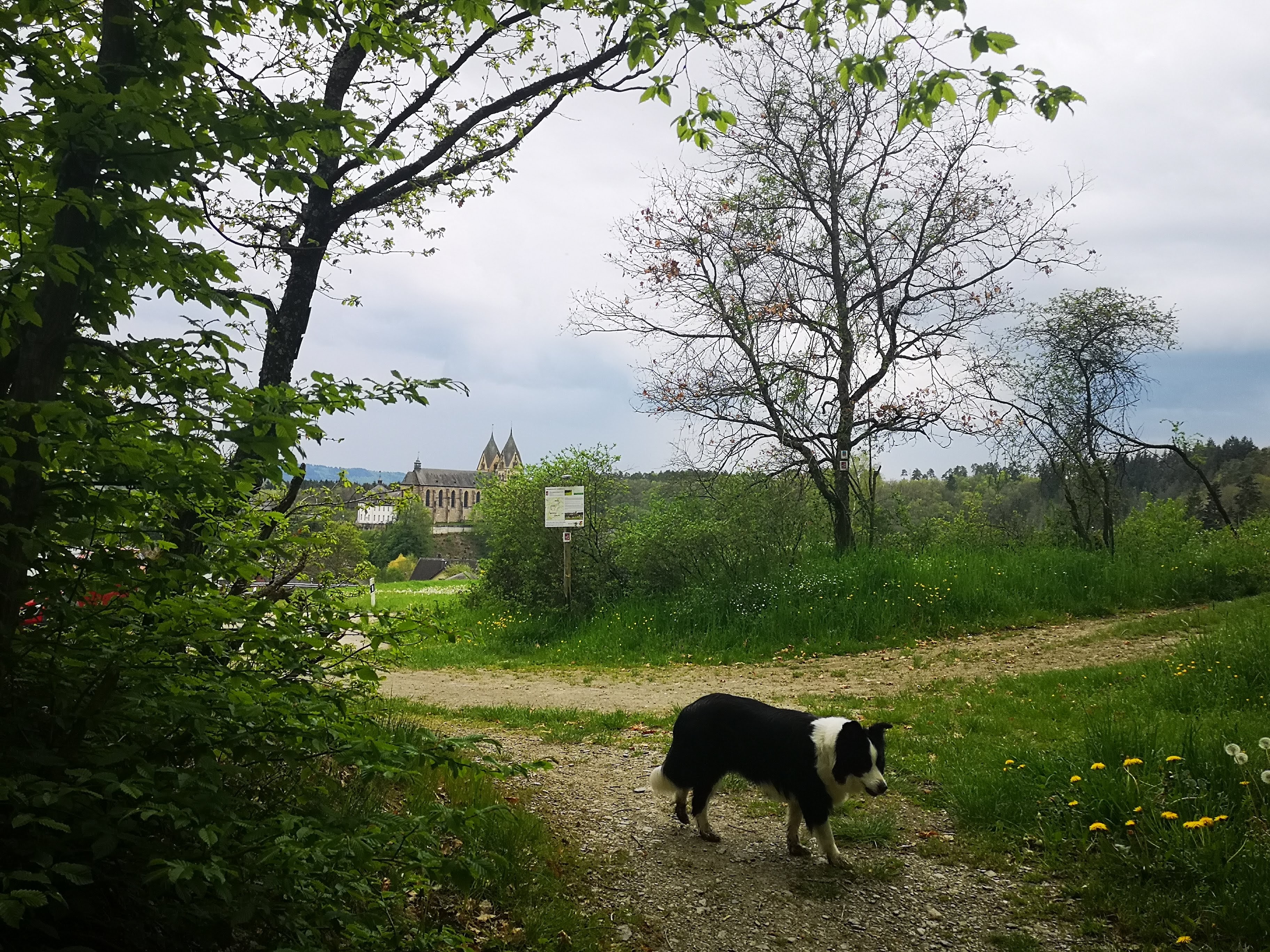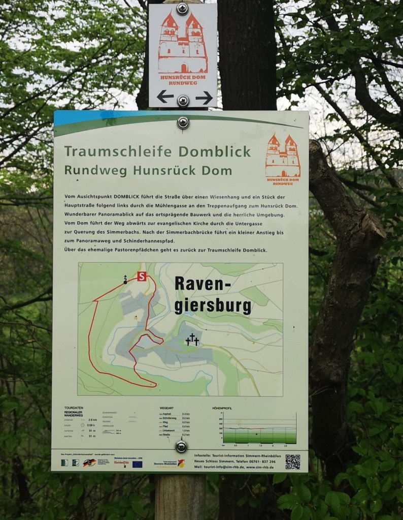 Verrassend mooi gelegen torent de kathedraal hoog boven het dorpje Ravengiersburg uit. Met de auto kronkelen we langzaam omhoog en parkeren bijna voor de deur. Wat een prachtig uitzicht heb je van hier over het dal en het dorpje