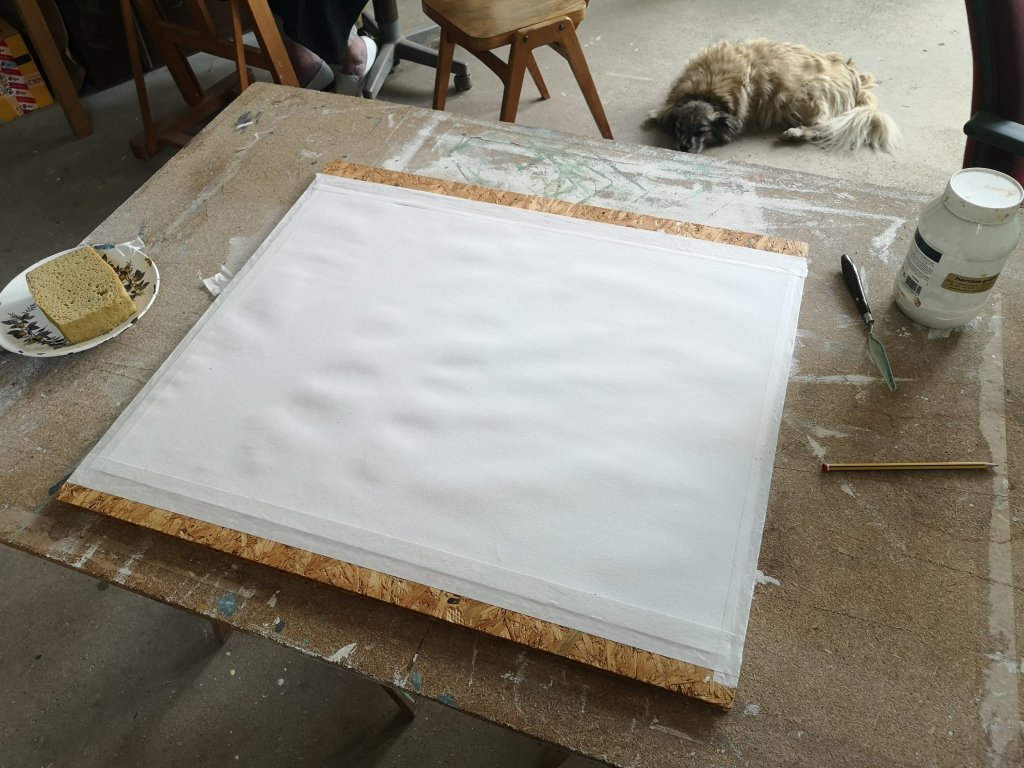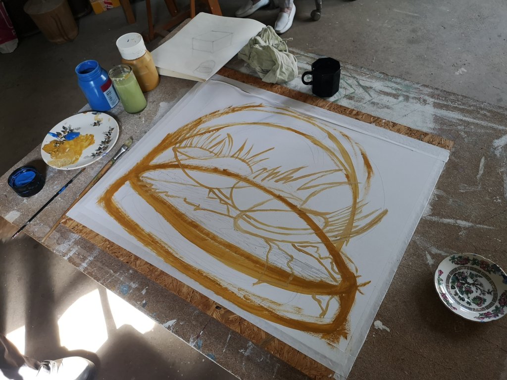 ‘ hoe zet je een doek op, hoe begin je? Ik had nog nooit met kwasten en verf gewerkt, wel met potloden en viltstiften .