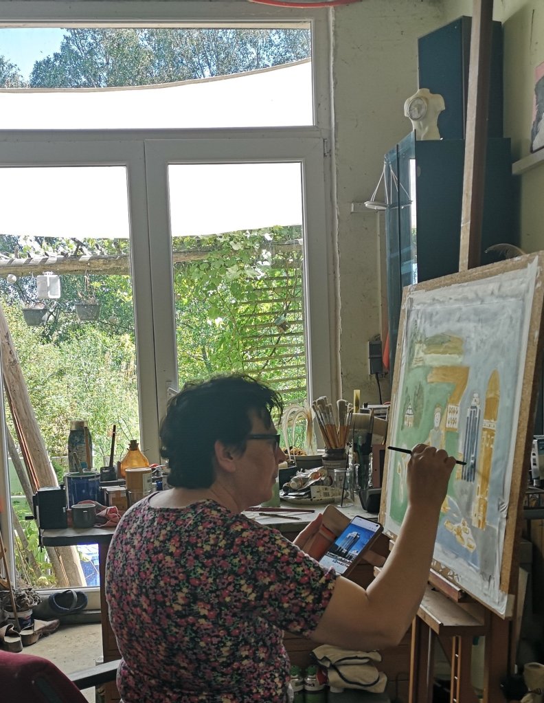 En mijn droom is concreter: na mijn pensioen ga ik een schilderkamer in mijn huis inrichten, waar ik in alle rust kan werken zonder de druk dat het schilderij na een paar uur af moet zijn.