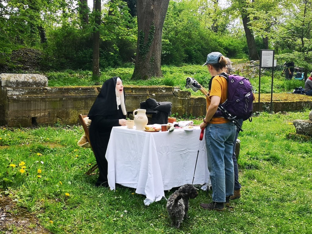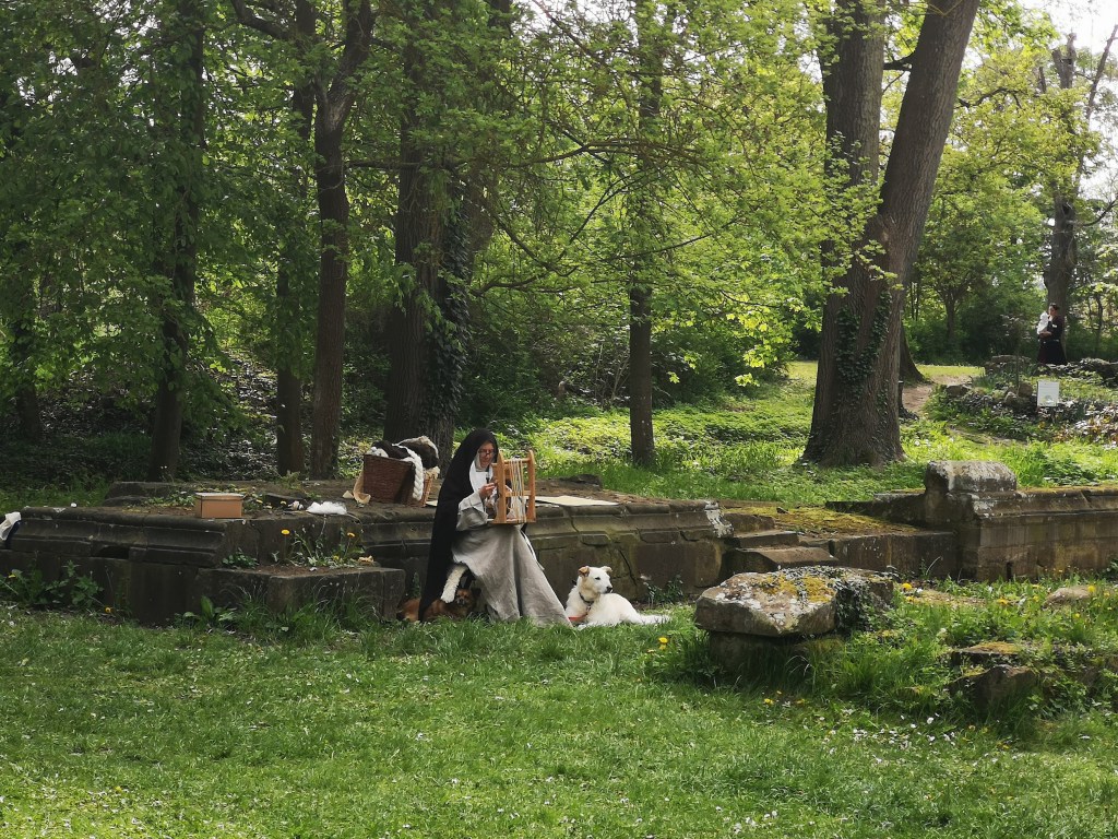Zo wil Harmke deze maanden meer leren over ‘leiderschap’ en had niet gedacht dat het leven van Hildegard daar ook inspirerend in zou zijn. ‘ We begonnen onze pelgrimsreis niet met etappe 1 maar we starten met de wandeling naar de Disbodenberg, de plek waar Hildegard de eerst 40 jaar van haar leven verbleef. Er was die middag een middeleeuwse markt en het leek ons leuk om dat mee te maken.’