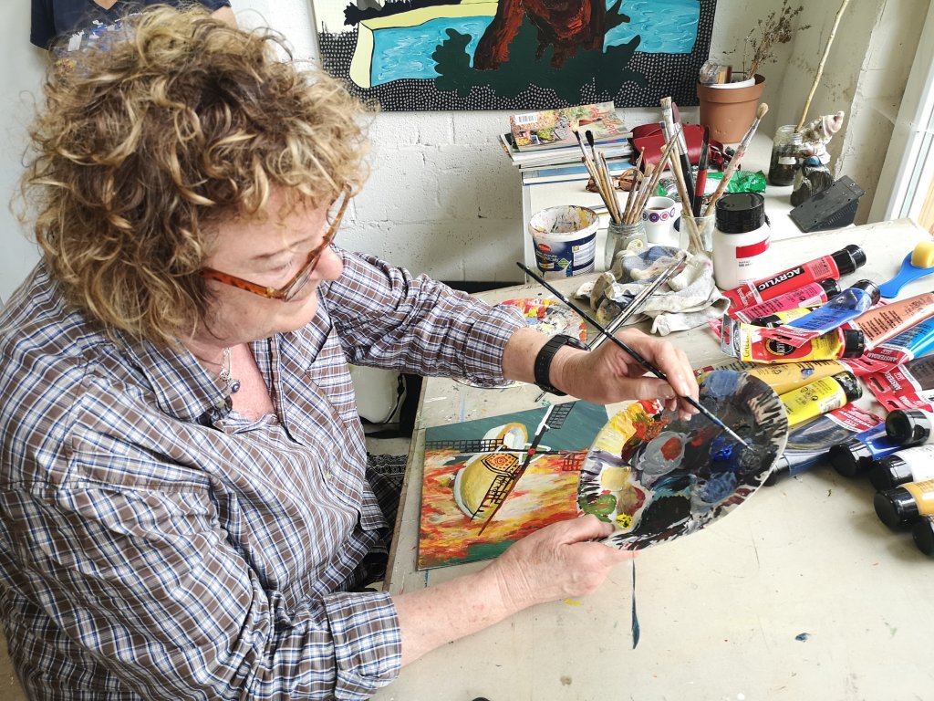 Op de vraag of ze als ervaren schilder tevreden is over wat deze week haar gebracht heeft antwoordt ze volmondig ja. ‘Ik weet nu hoe ik met olieverf moet werken en heb ook ontdekt dat ik het wel veel gedoe vind, omdat ik gewend was met acryl te verven en dat droogt sneller. ‘Conny heeft me geadviseerd als ik vastliep of een vraag had. Ze is een echte professional.’