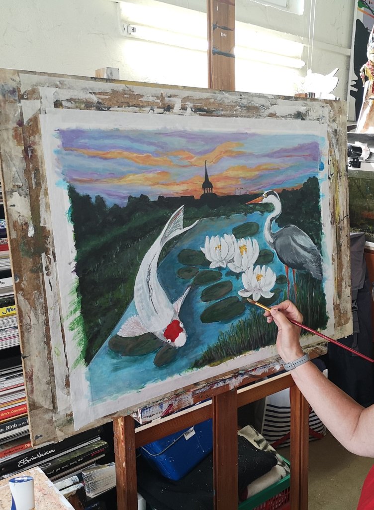 Als ‘Pinterest liefhebber’ was ze thuis door haar verzameling plaatjes gescrold en had bedacht dat ze een onderwaterwereld wilde schilderen. ‘Het licht dat op en door het water valt is zo anders. Dat wilde ik ook leren.’