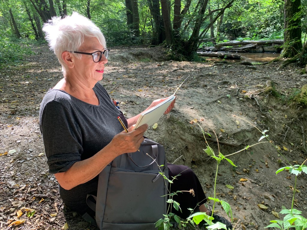 ‘Ik wist niet dat dit zo leuk was’, zegt oma na afloop. En ook kleindochter K van 11 jaar bleek talent te hebben en te genieten van de vrijheid van het buiten tekenen.