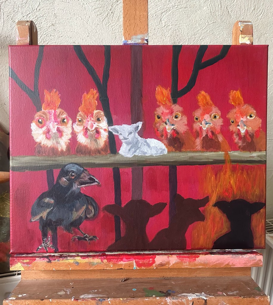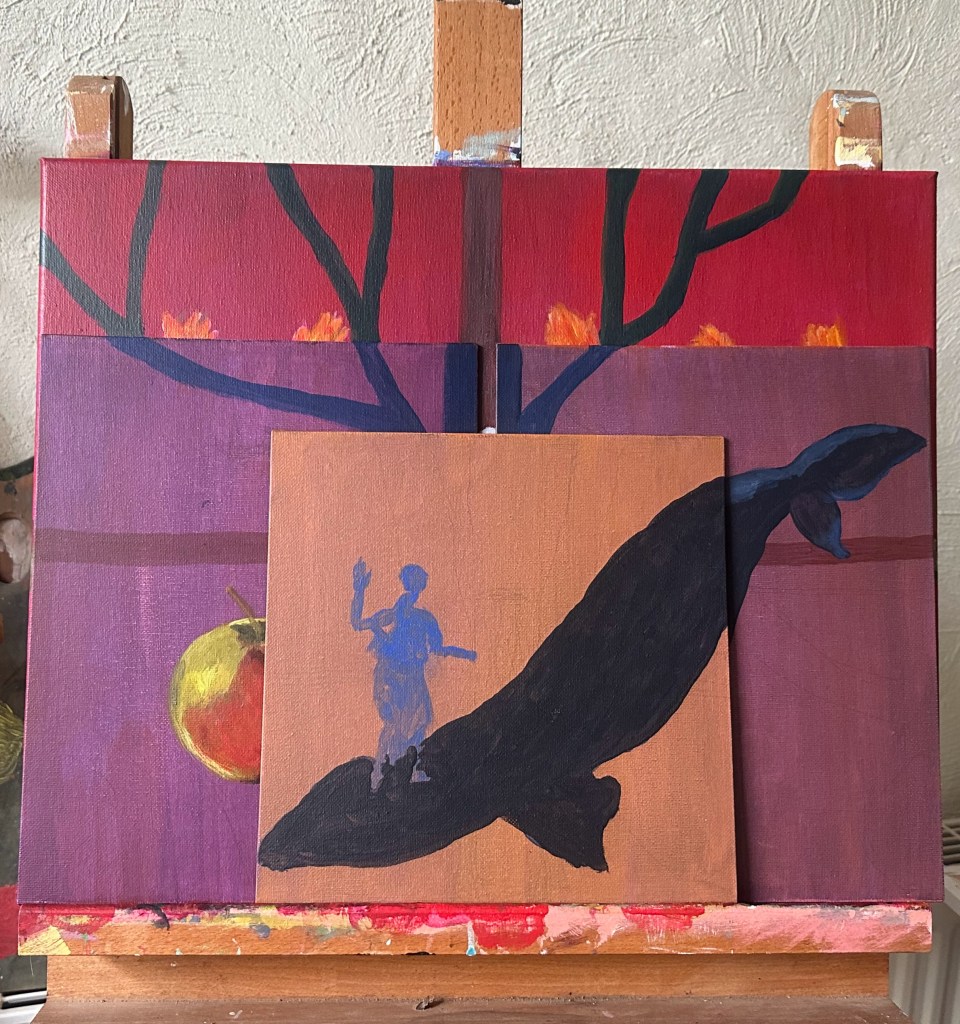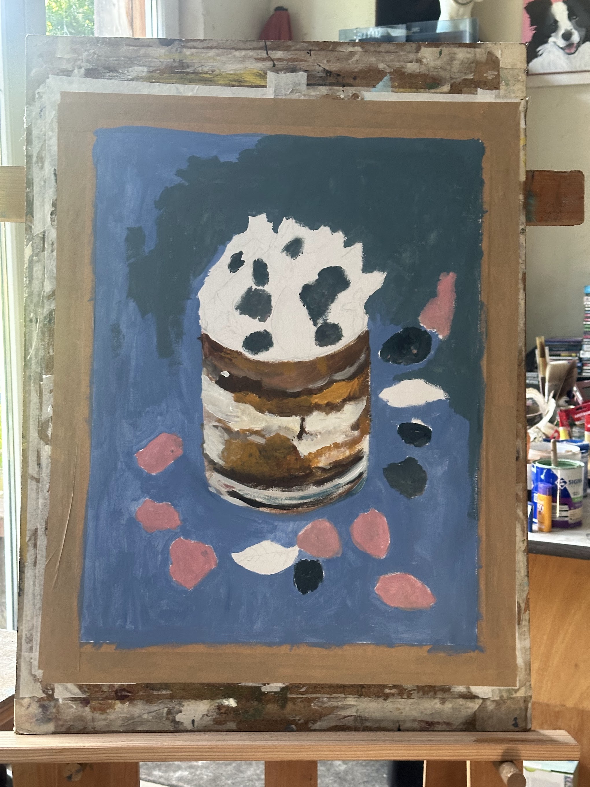 Voor wie dat prettig vindt heeft Conny elke schildercursus een thema waarmee je als cursist aan de slag kan. Vrijheid blijheid, maar deze zomergroep bleek wel wat te hebben met het thema ‘Eten en drinken’. Of zoals een van de deelnemers het verwoordde: ‘ met zo’n thema kan je alle kanten op en daar wist ik wel raad mee. ‘ De uiteindelijke resultaten waren verrassend divers.