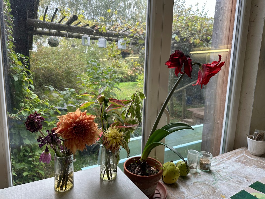 Tussen neus en lippen zegt ze ook nog even iets over ‘het vergaan van de wereld’. Dan stapt ze snel over naar haar liefde voor het schilderen van tulpen. Vooral uitgebloeide tulpen boeien haar.