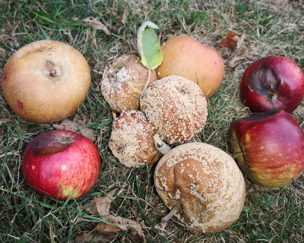 Het rottende fruit, her en der onder de bomen verspreid, trok Meta’s aandacht.
