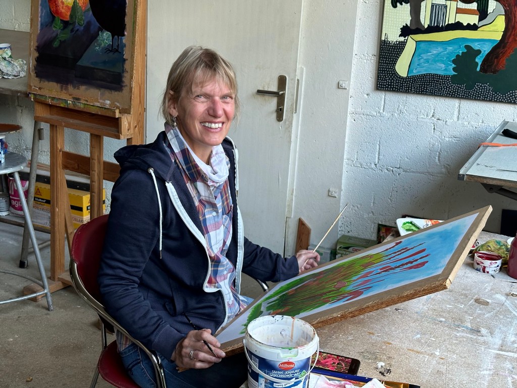 Meta was samen met haar moeder gekomen. ‘We houden allebei van schilderen en mijn moeder wilde sowieso heel graag een keer naar Bollenbach. Het is fijn om een doel te hebben als je samen op pad bent. In dit geval dus de schilderworkshop.’