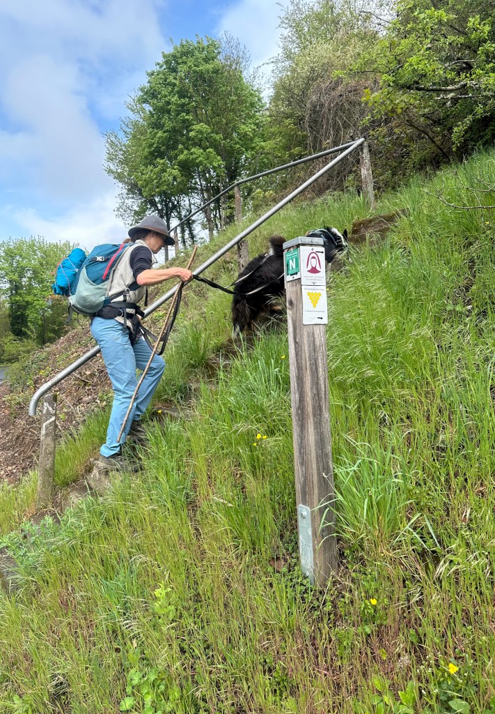 Halverwege etappe drie begint het flink te regen. En in het Simmertal gaat het zelfs onweren. Esther besluit om zich bij Weiler (een gehucht in de buurt van Monzingen) te laten ophalen. Ze heeft een mooie schuilplaats gevonden in een bushok, waar haar honden ook bij kunnen komen en opdrogen.