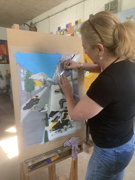 Conny geeft les in kleine groepen zodat ze iedereen persoonlijk de aandacht kan geven die je nodig hebt en je ook van elkaar kunt leren. Gezelligheid en gastvrijheid staan voorop. En je gaat altijd naar huis met een schilderij waar je trots op mag zijn.