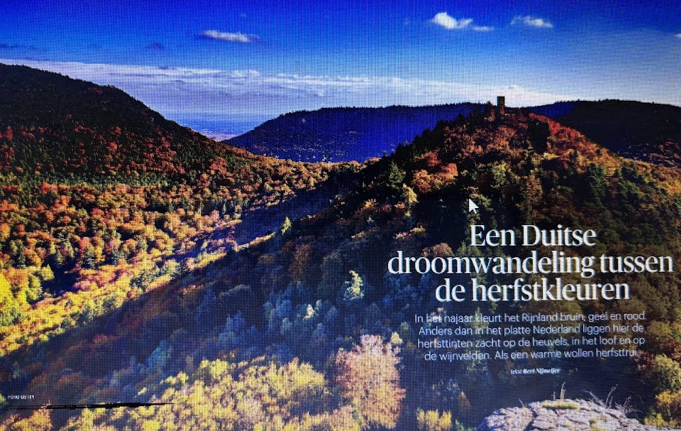 Geen betere reclame voor onze geliefde regio dan reclame die gemaakt is door een andere betrouwbare bron. In de zaterdagkrant van het dagblad Trouw (23 november 2025) stond een lyrisch stuk over wandelen in het Hahnenbachdal. Voor velen van jullie inmiddels ook een populair wandelgebied in de Hunsruck, gelegen om de hoek van Bollenbach.