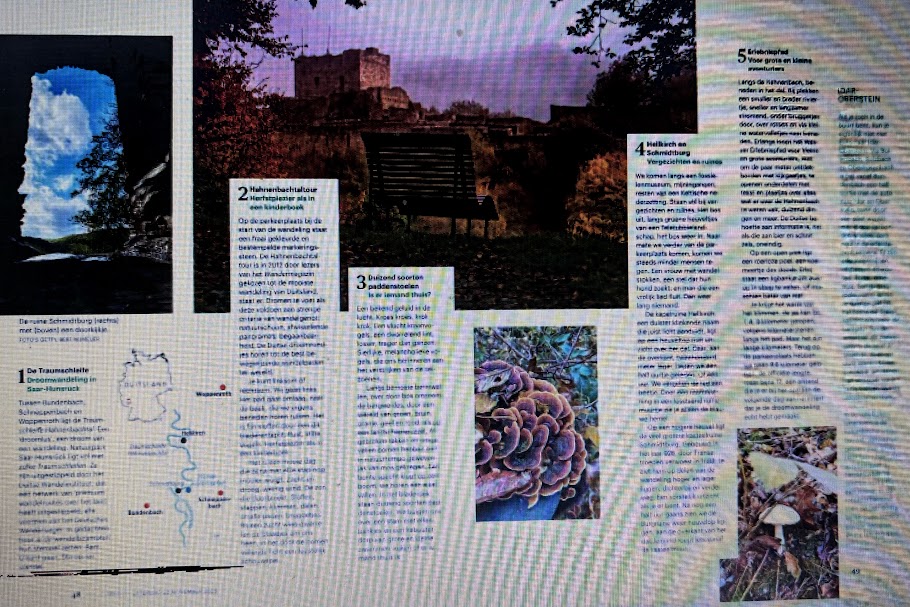 De redacteur van Trouw, Bert Nijmeijer, besteedt in zijn reportage o.a. aandacht aan de Hahnenbachtaltour, die in 2012 door Duitse wandelaars verkozen werd tot de mooiste wandeling van Duitsland. En brengt een bezoek aan het beroemde edelsteenstadje Idar Oberstein.