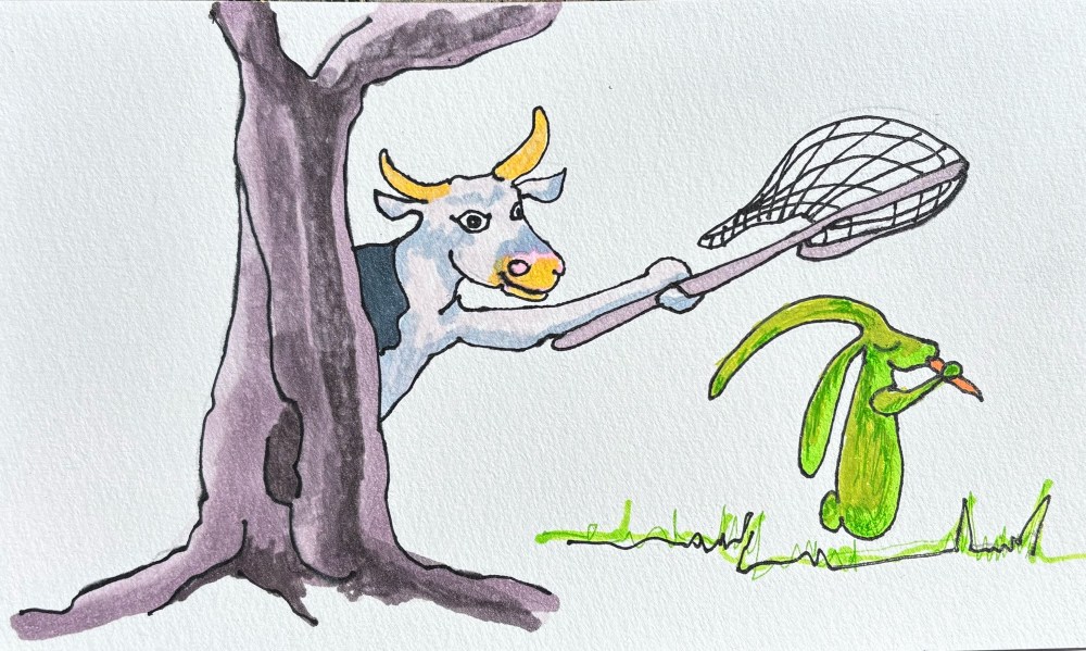 Je weet tenslotte nooit hoe een koe een haas vangt.